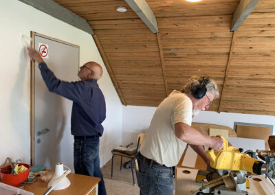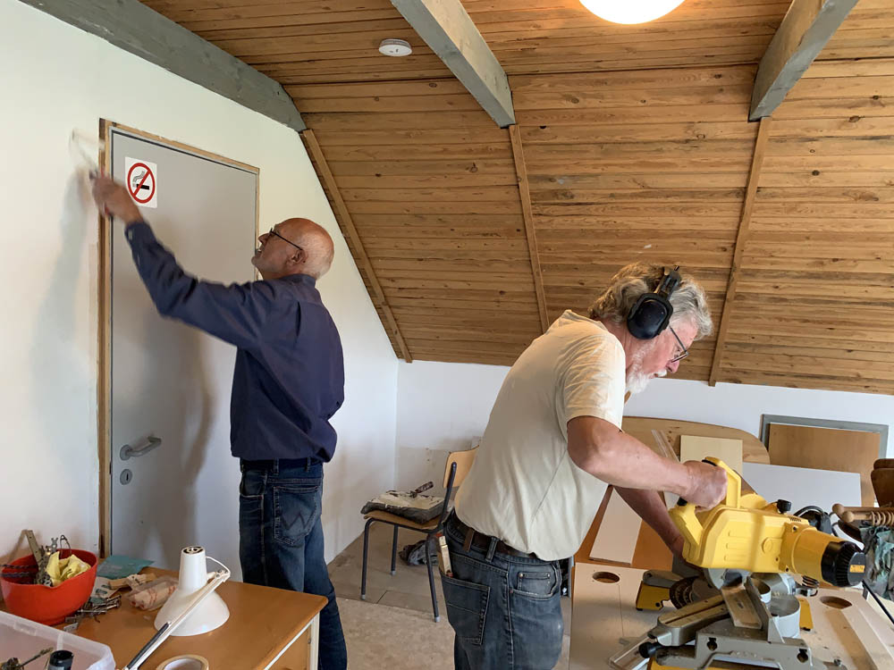 Arbejdsdag i Sæby Baptistkirke, der tømres indenfor og laves ny indgang til kirken, for at gøre den mere handicapvenlig.